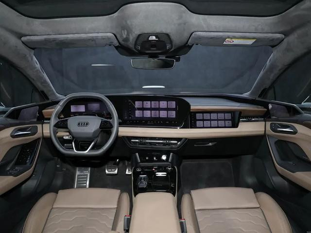 车内搭配尺寸非常夸张的大连屏,大量的木纹饰板让车内看起来充满温馨的感受,让人有种放松的感觉。其动力系统搭载的电池容量达到100kWh,满电状态下CLTC续航里程超过700公里。智能数字平台还采用了具备超快充电功能的800V架构:快充10分钟即可使续航里程增加370公里,官方0-100公里/小时加速时间为3.6秒,搭载前后双电机,依旧命名quattro。此外,车辆还将配备渐进式前轮转向、全轮转向以及空气悬架。
