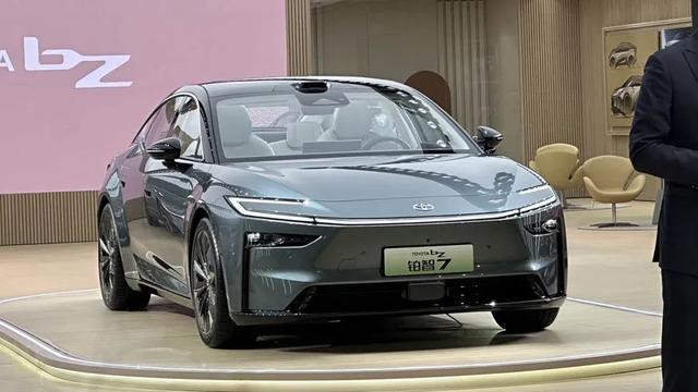 2025年上海车展上,丰田中国正式发布了铂智7车型。作为一款全新的纯电轿跑车,新车将配备激光雷达,采用高阶智驾。其外观采用丰田家族经典的C型贯穿式头灯设计,整体造型流线,前包围设计夸张,以降低风阻系数。车侧动感的腰线十分抢眼,车顶天幕与后车窗连成一体,并延展至新车尾部,搭配隐藏式门把手和大尺寸的轮圈。车尾贯穿式的尾灯展现出极简的设计,尾部弧形的设计造型夸张。