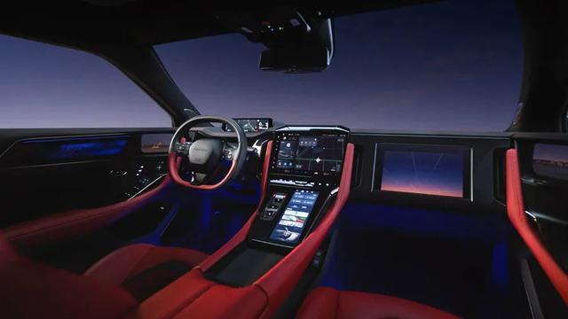 车内旨在打造赛车级座舱,实用了碳纤维骨副仪表台、碳纤维一体式座椅、高强度防滚架等配置,方向盘同样为赛车造型,副仪表台设搭配出了飞行器操控台的既视感,主驾驶位全液晶仪表、中控区/副驾驶位触控屏也都具备,车内配置同样对标国际水平。其动力系统最大功率400千瓦,可以实现0-100km/h加速3.2秒,车辆还将搭载线控转向、云辇-M、全线控底盘、易三方系统,无论是动力输出层面,还是操控技术部分,可圈可点。